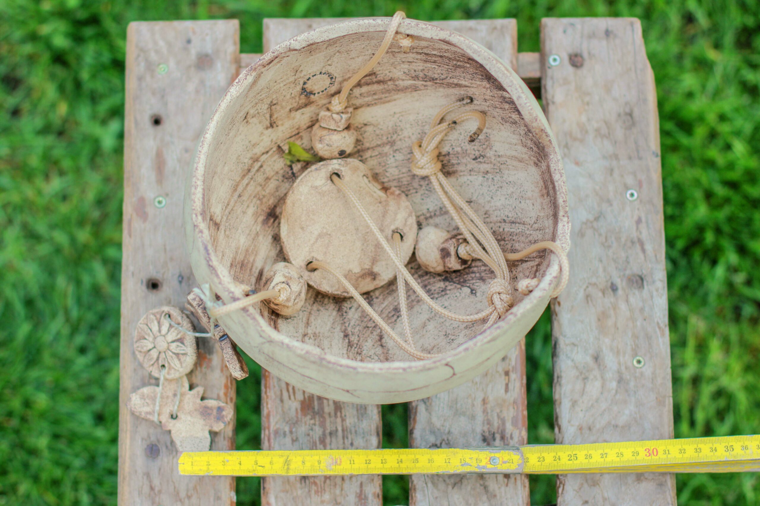 Meine verwendeten Schnüre zum Aufhängen sind aus Kunststoff mit einem starken Kunststoffkern. Bei mir hängen die Keramiken seit 9 Jahren mit den ersten Schnüren. Sie werden irgendwann weiß, grau, grün…sie halten trotzdem.