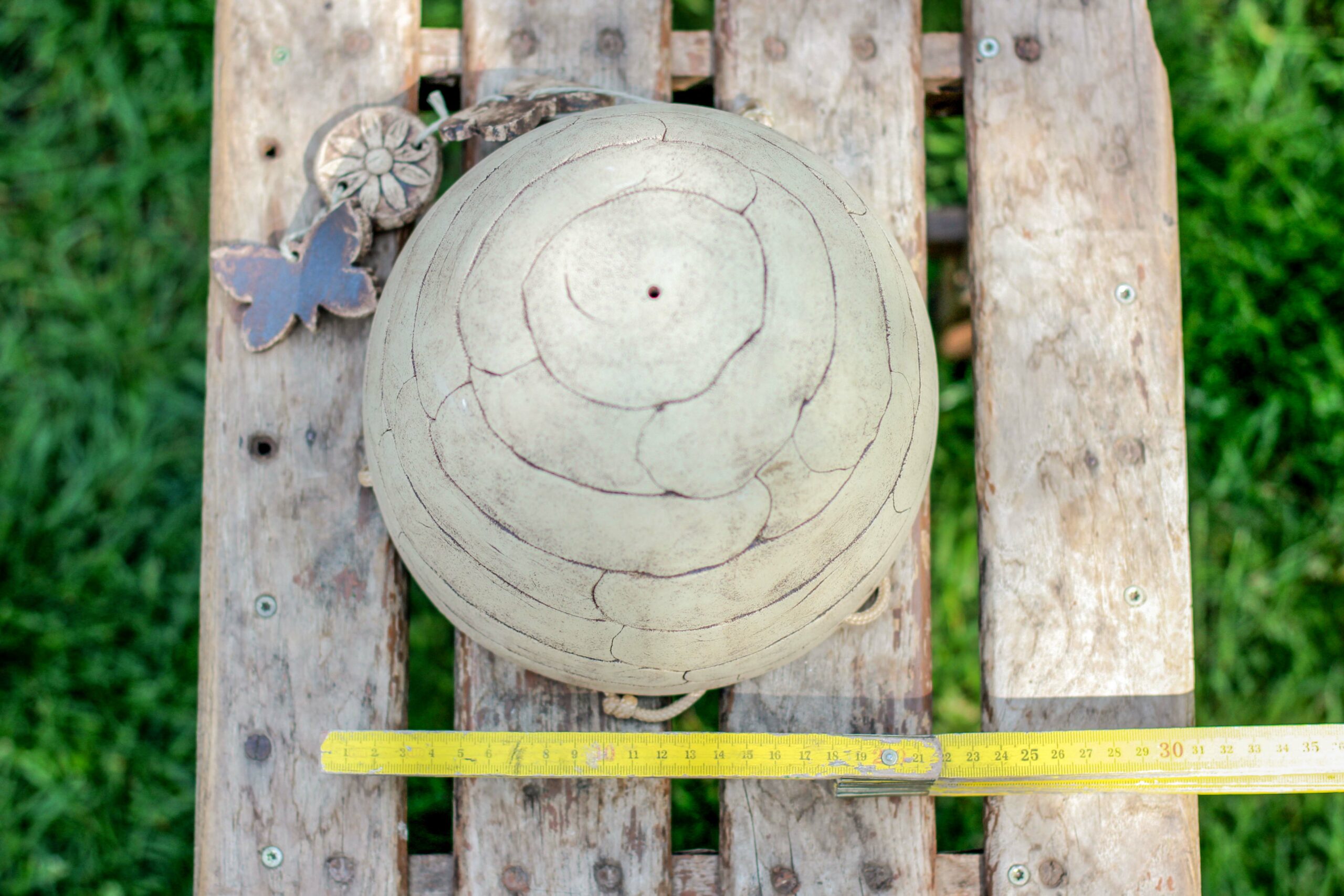 Blumenampel in Form eines halben Ei´s. Alle meine Hängeampeln haben unten ein Ablaufloch damit sie direkt bepflanzt werden können.