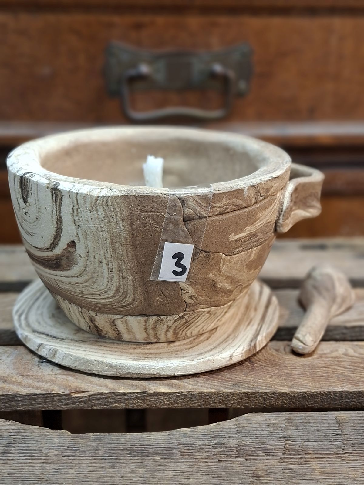 ACHTUNG: Die Numerierungen dienen nur zu meiner Orientierung. Jede Gartenfackel, bzw. jedes Produkt aus dem marmoriertem Ton kann nur EINMAL so gefertigt werden. Jedes Produkt aus diesem Ton wird anders und wenn die Nr.5 verkauft ist wird es sie nicht nocheinmal geben. Es gibt dann eine andere Nr. 5 die anders aussieht.