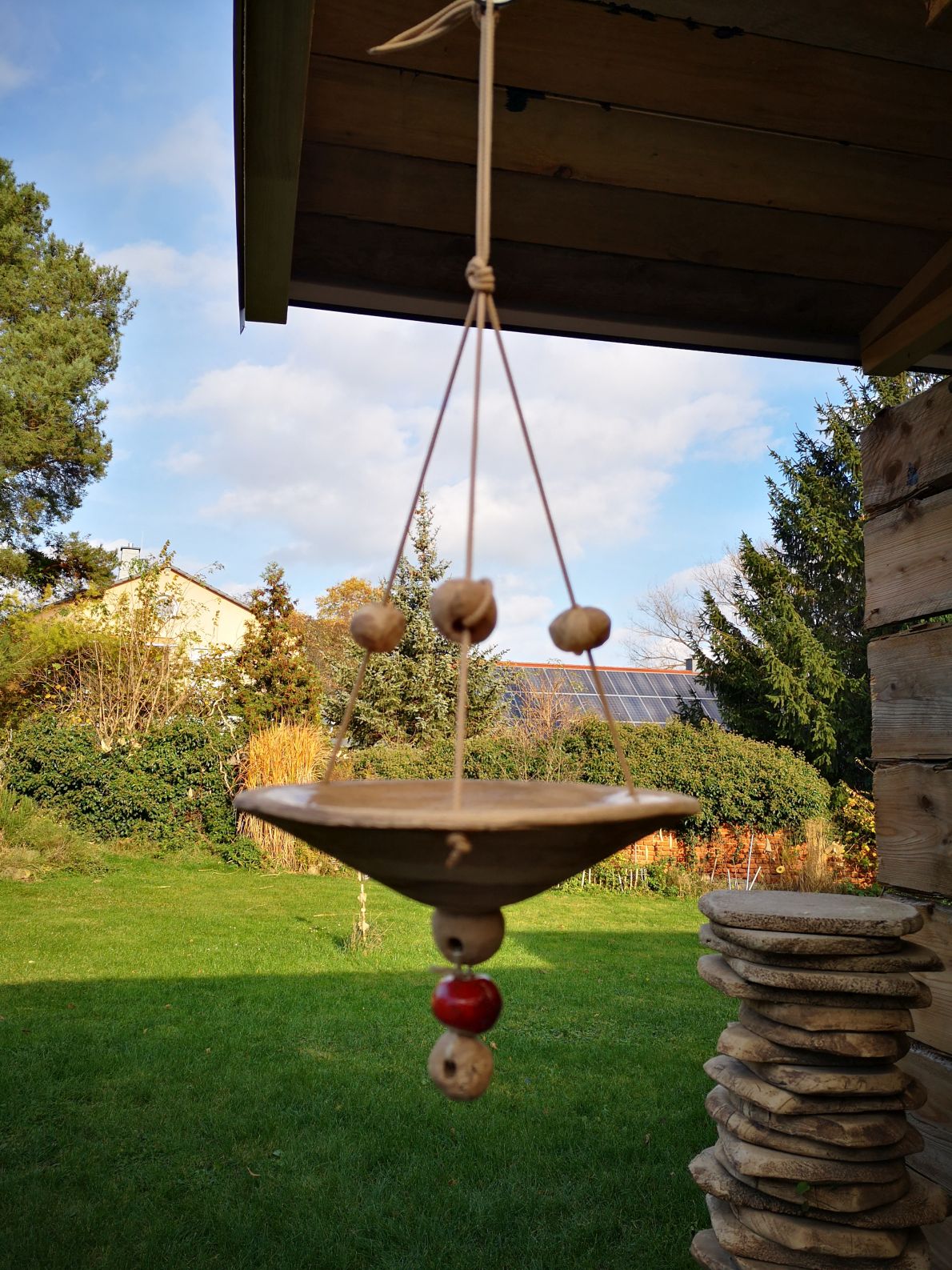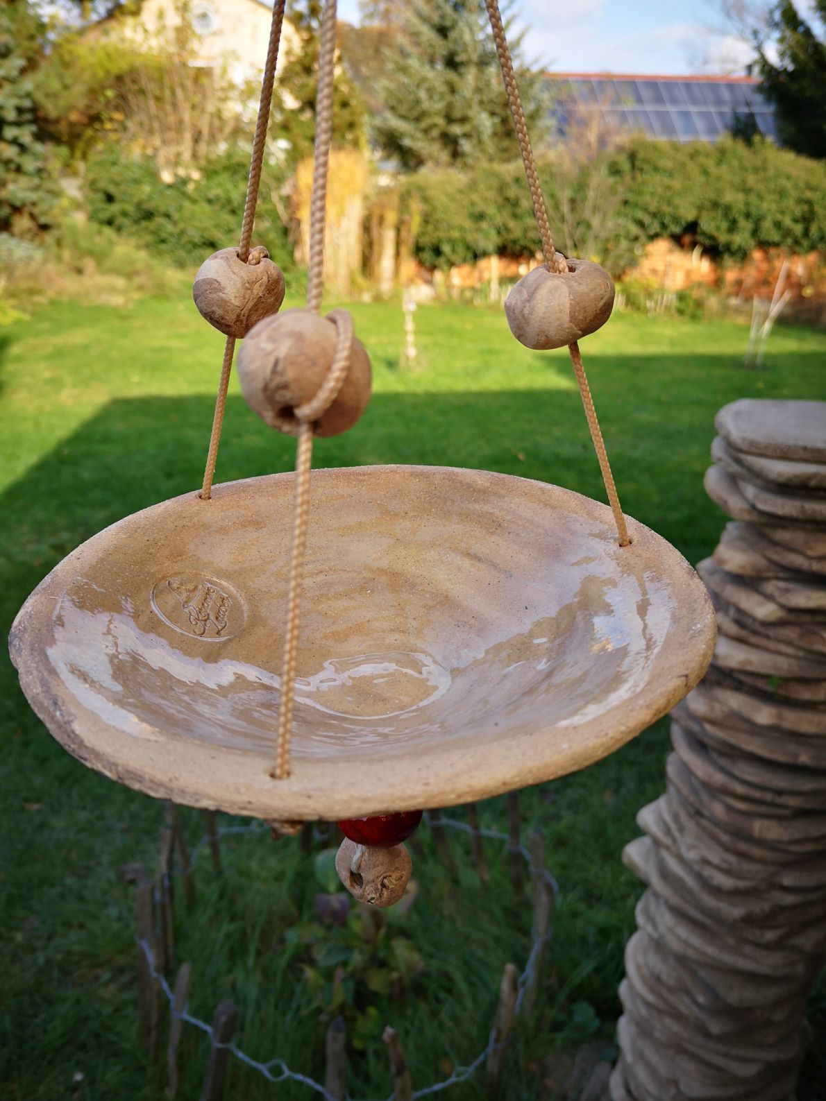 Eine schöne Bienen-und Insektentränke die hier bei mir rege genutzt wird. Man kann sie mit Glasperlen oder Kieselsteinen füllen. Es ist mittlerweile sehr wichtig geworden den Insekten Trinkmöglichkeiten zu bieten. Wie bei den Vogeltränken auch, ist es wichtig, daß die Tränke immer an der selben Stelle hängt. Dann kann man auch bald reges Treiben beobachten.