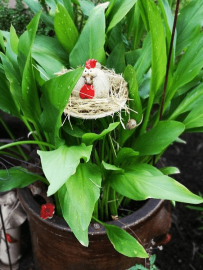 Ausserdem kann man sein Nest jahreszeitlich schmücken. Henriette sieht hängend gut aus und im Beet hat man auch seine Freude an ihm.