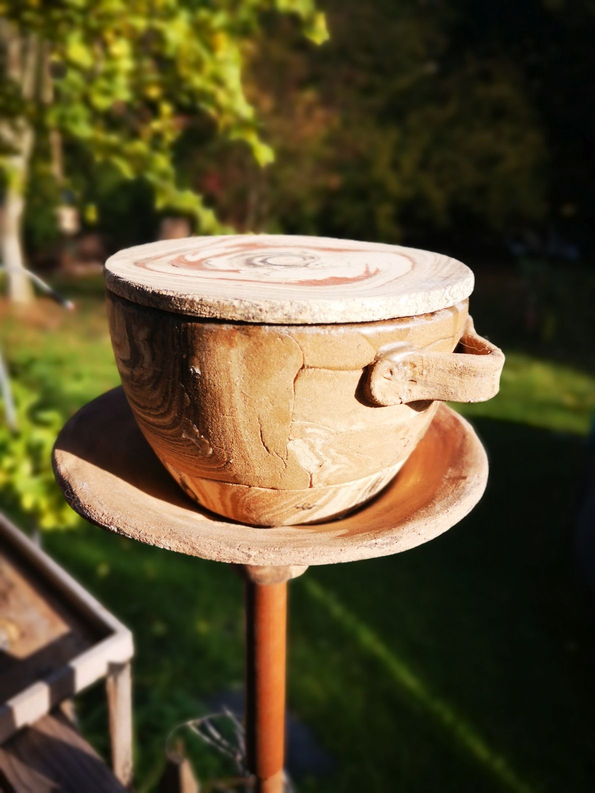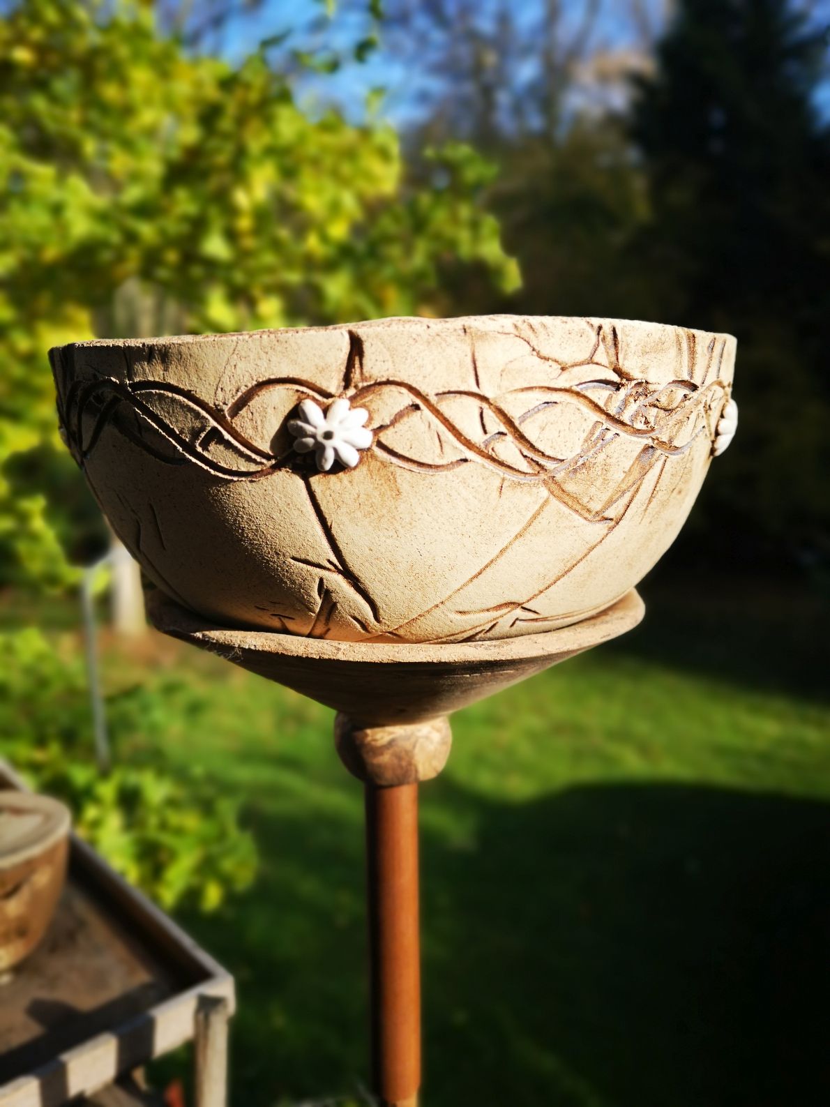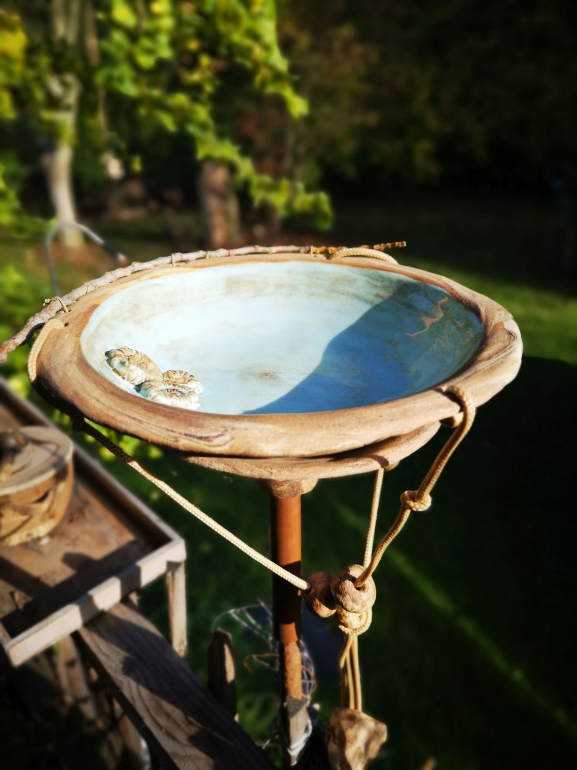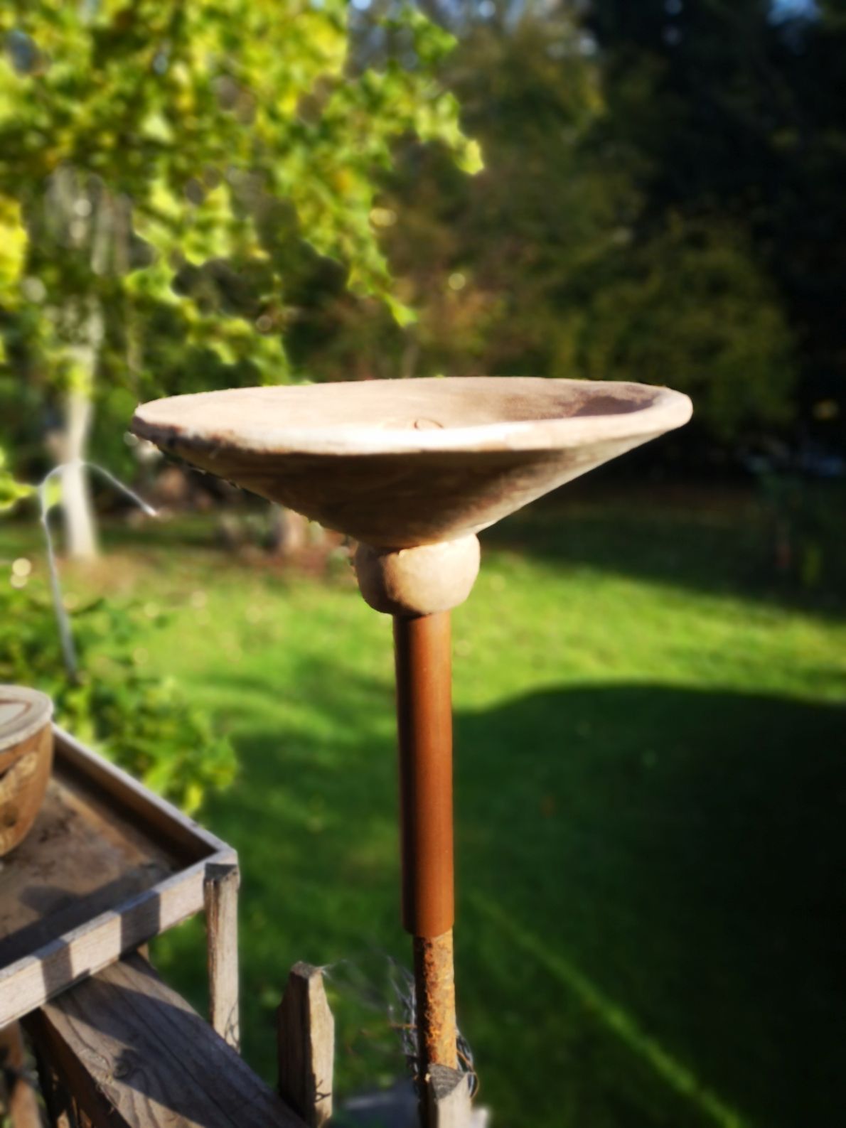 Eine alte Schale liegt noch rum? Man kann sie einfach in die Halterung stellen und als Vogel-oder Insektentränke nutzen. Auch für meine Gartenfackeln ist diese Halterung ideal.