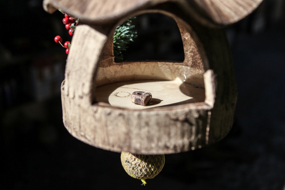 In der Mitte des Bodens ist ein Loch eingearbeitet, an dem zusätzlich ein Meisenknödel aufgehängt werden kann. Befestige den Knödel dazu einfach an dem von mir mitgeliefertem Draht. Das Häuschen kann leicht gereinigt werden. Einfach mit einer Bürste schrubben und das Futtersilo erstrahlt in neuem Glanz. Dieses Vogelhäuschen ist nicht nur ein praktisches Futtersilo, sondern auch schön anzusehen. Mit ein paar Teelichtern ausgestattet, wird es zu einem schönen Lichtobjekt und kann so auch im Sommer genutzt werden.