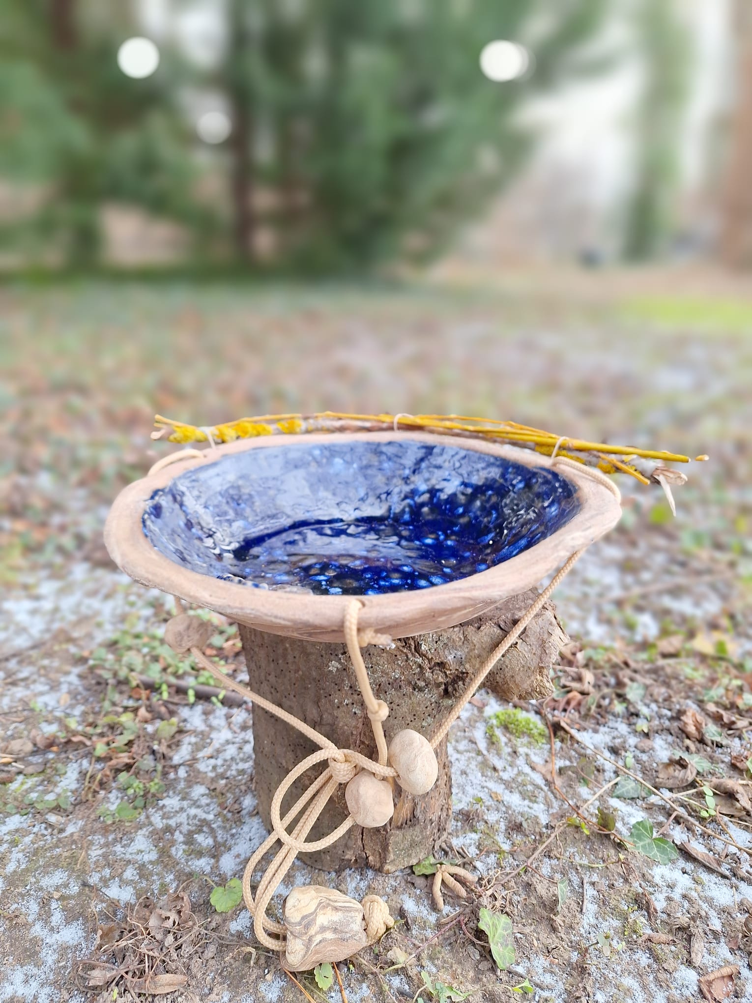 Eine schöne Vogeltränke die hier bei mir rege genutzt wird. Die kleine Tränke ist schlicht gehalten und passt sich wunderbar in die Natur ein. Man kann sie entweder hängen oder stellen.